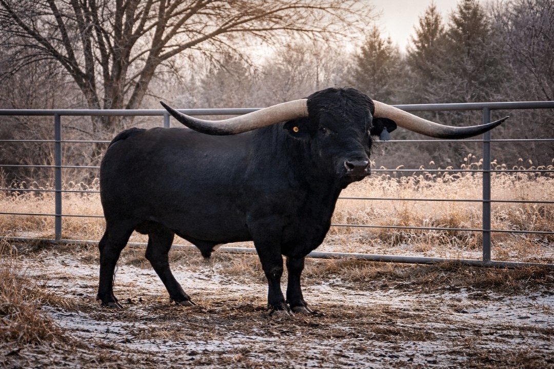 RL Black Market was special from the day he was born. And to top it all off he was DNA verified to be Homozygous Black. He can only throw black offspring. His parents are 2 of the best black longhorns in the breed and so far he is passing that on to his calves as well.